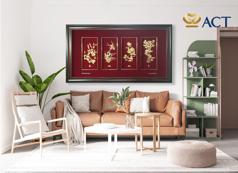 Quà tặng tân gia – Tranh tứ quý dát vàng
